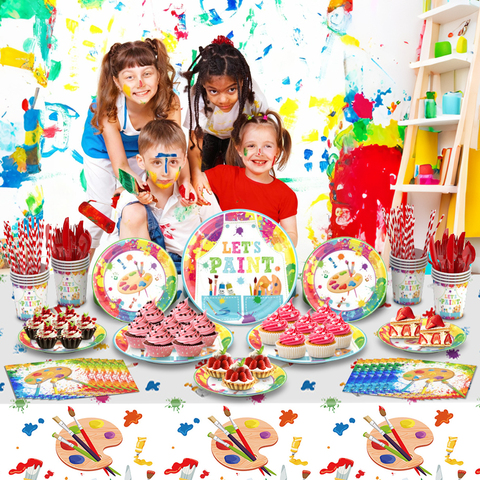 Tablero temático de pintura de artista, servilleta, fiesta de pintura para niños y niñas, juego de vajilla de cumpleaños, decoración de mesa de fiesta