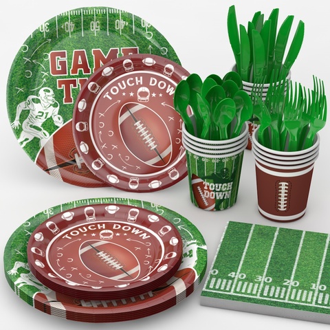 Suministros de fiesta de fútbol americano con temática del Super Bowl, juego de vajilla, platos de papel, vasos, servilletas, juego de vajilla desechable para fiesta